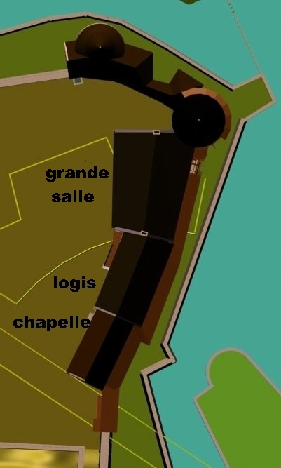 De gauche à droite : donjon, chapelle, logis, grande salle, tour de l'Auloge Équivalent de la fig. 1 (vue 25). |